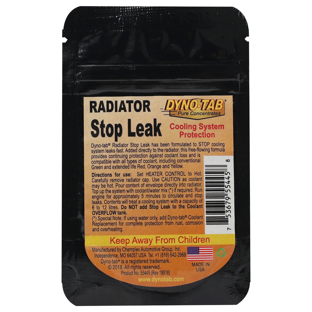 DYNO TAB Cooling System Radiator STOP LEAK – Permanent Leak Protection | Prevents Overheating & Coolant Loss | Easy-to-Use | 1 Pouch Treats 12 Liters – 55445